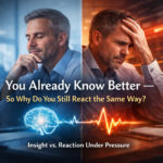Fight may express as anger, irritability, defensiveness, or confrontation. Flight may express as anxiety, panic, restlessness, or the urge to escape. In both cases, the system prioritizes action over reflection.